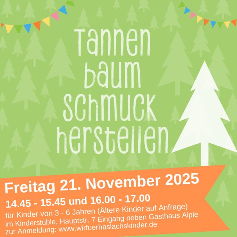 Wir kleben, malen, fädeln und stanzen wieder! Gemeinsam stellen wir Schmuck für die Tannenbäume im Städtle – und eines für Zuhause her.
